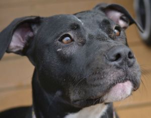 Once upon a time, Effie the pit bull terrier was found wandering the streets of East St. Louis, pregnant. Gateway Pet Guardians took her in, and she gave birth to 10 puppies, all of whom were named after characters in The Hunger Games. Effie weaned her puppies, and they all went to forever families – while she waited at Gateway Pet Guardians for her forever home.