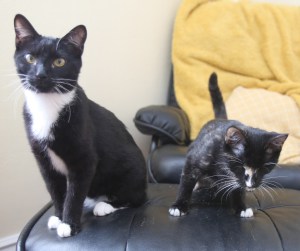 The brother and sister are a tightknit pair and often get into trouble together. Gina says Iris is prone to toe-biting – her way of getting attention. The kitten has to be shut in another room while the litter box is being cleaned because she loves to play and will grab at the scooper.