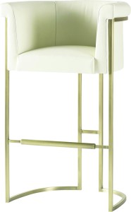 “The finish makes the bar cart a little unexpected but also takes a functional accent piece to a new level,” she says. “A metallic brass finish is also being used in wall tiles. These tiles would make a dramatic and memorable backsplash in a residential bar area.”